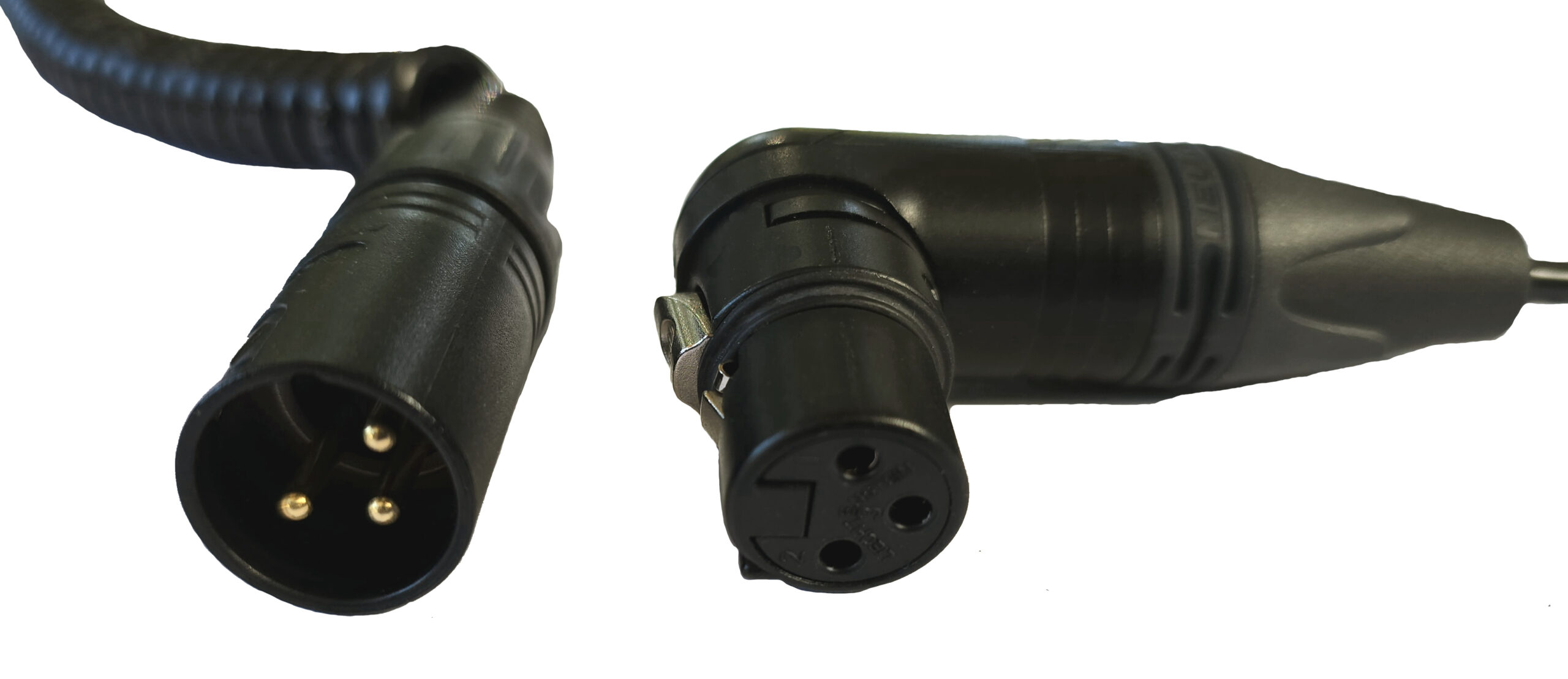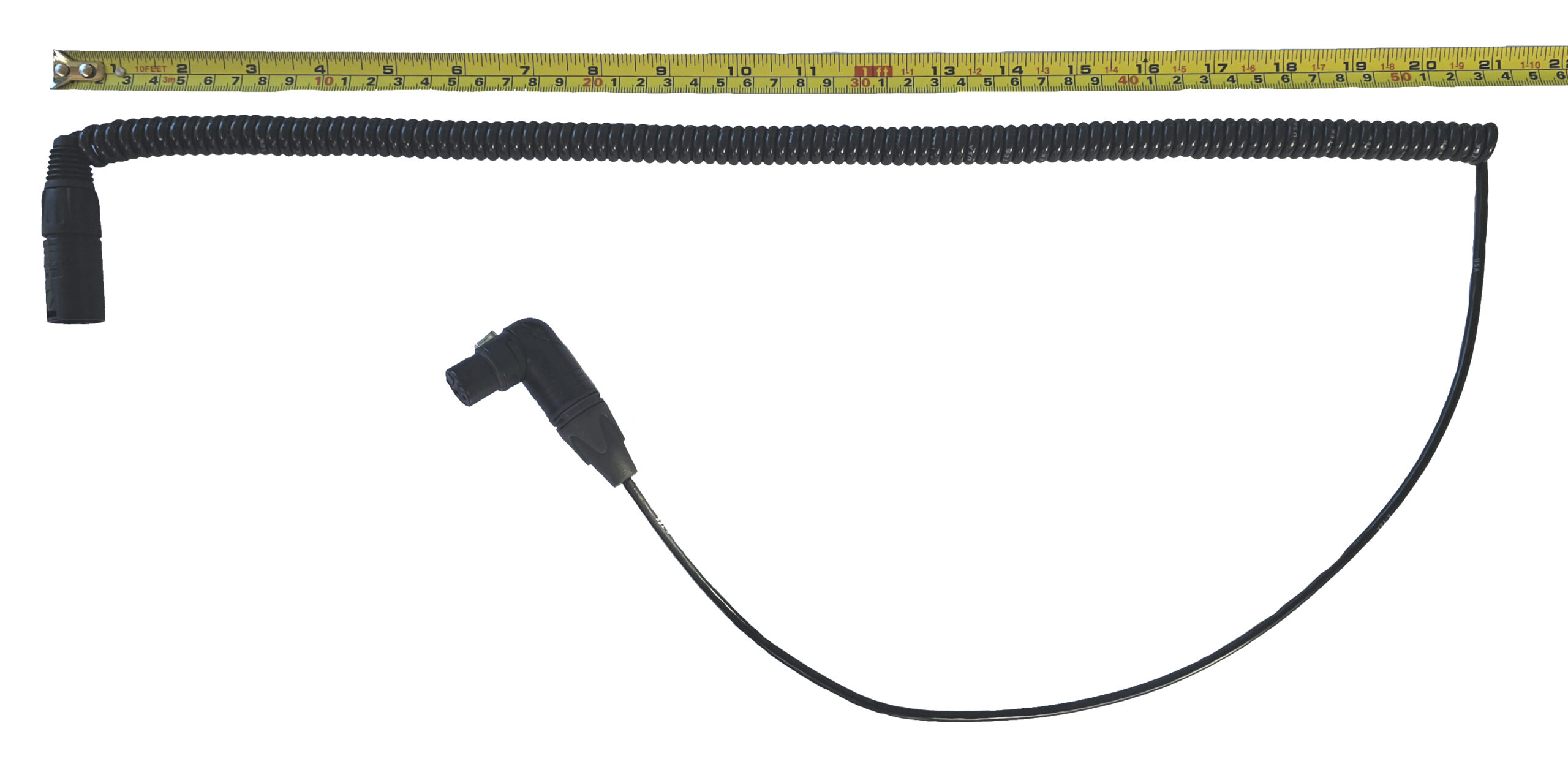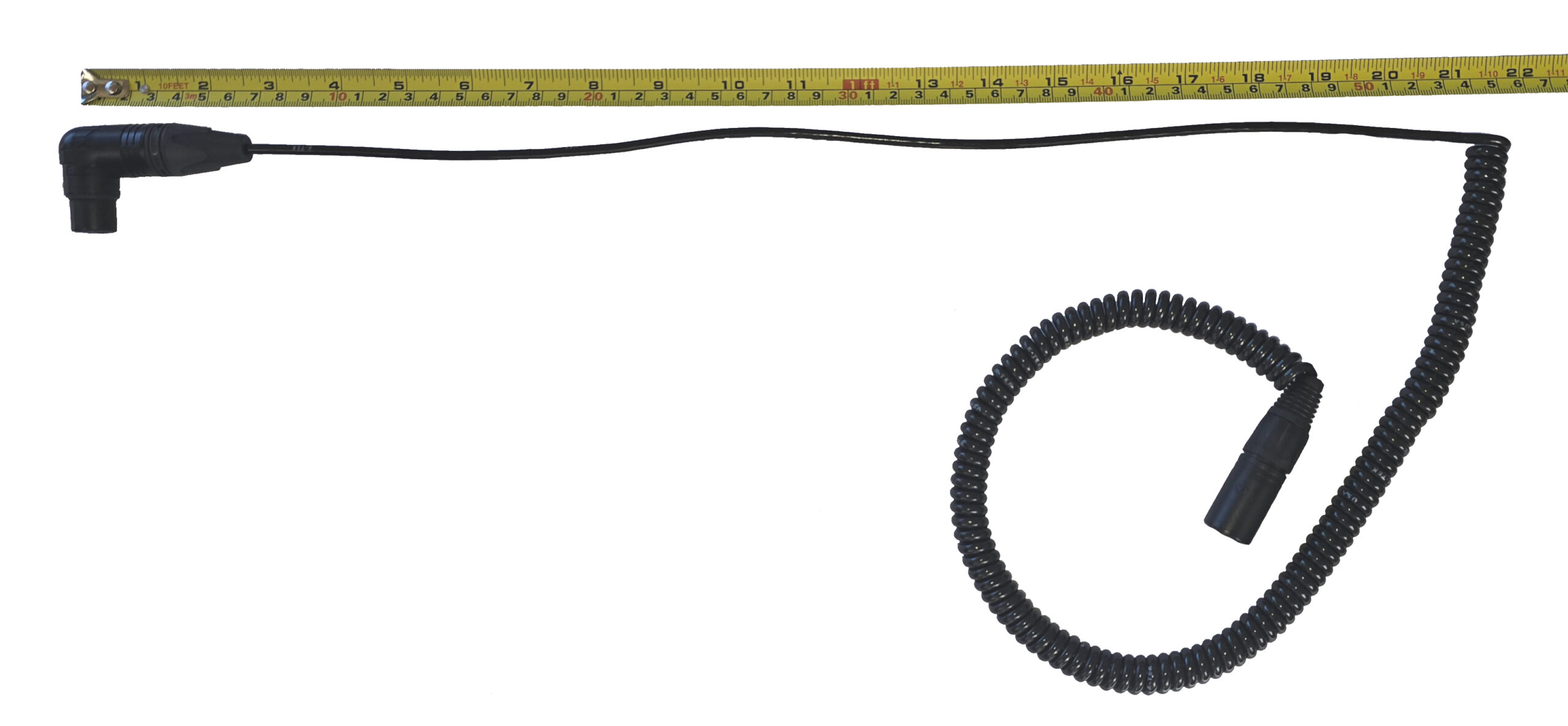 KBOC1 – K-Tek Boom Cable, (Set of 2x, with 2x BongoTies) This is a proprietary cable with extra shielding and strong Neutrik connectors. From a non-stretched 41″ (104cm) to an approx 5-6 feet (150 – 180cm) strechted this cabe is working reliably on set. One end is kept straight for 20″ (51cm) so a smooth sliding into a boom pox is guaranteed. The coiled section of the cable offers great retraction performance The straight end is fitted with a Neutrik right-angle female connector, while the coiled end features a Neutrik straight male connector.