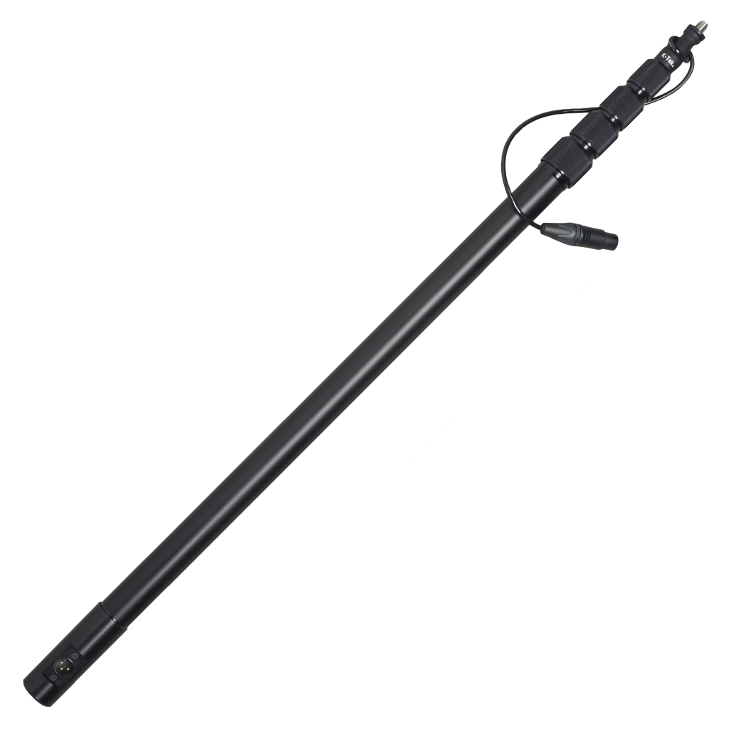 This KE144CCR Avalon Aluminum Boompole has a collapsed length of 3’5″ | 104cm and an extended length of 12’2″ | 371cm and only weighs 2.24lbs | 1016g. This 5-section Aluminum Boompole features an Internal Coiled Cable. The top attachment is a 3/8″ – 16 male thread and the bottom attachment is a Male 3-pin XLR Side Exit with Delrin Base.