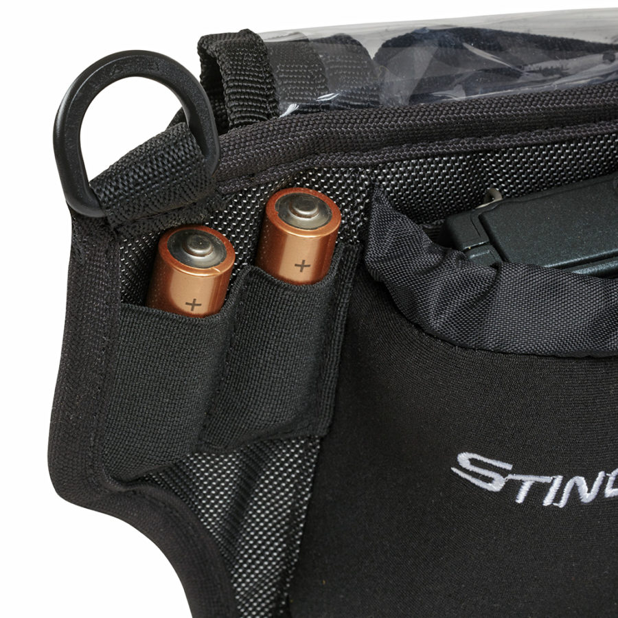 Stingray F3 Action Belt with two front straps to securely hold and protect a Zoom F3 Professional Field Recorder. Designed for sound recording professionals and videographers to provide convenient, easy access to their Zoom F3 Portable Field Recorder. Includes 2 front pockets to hold 4 x 4 wireless receivers, transmitters or other accessories, adjustable belt for a custom fit, built-in kickstand and rain cover.