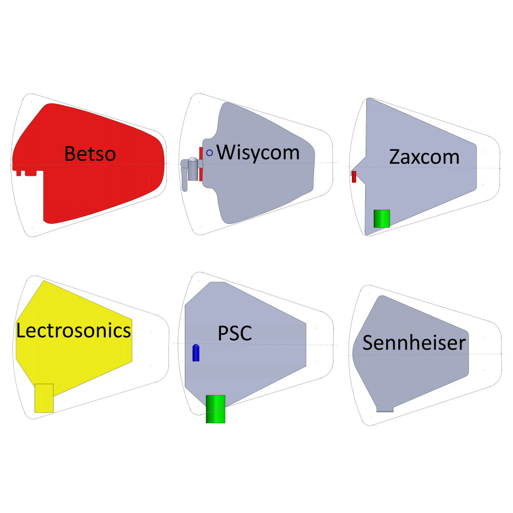 The versatile design fits sharkfin antennas from Betso, Lectrosonics, PSC, Sennheiser, Wisycom and Zaxcom among others.